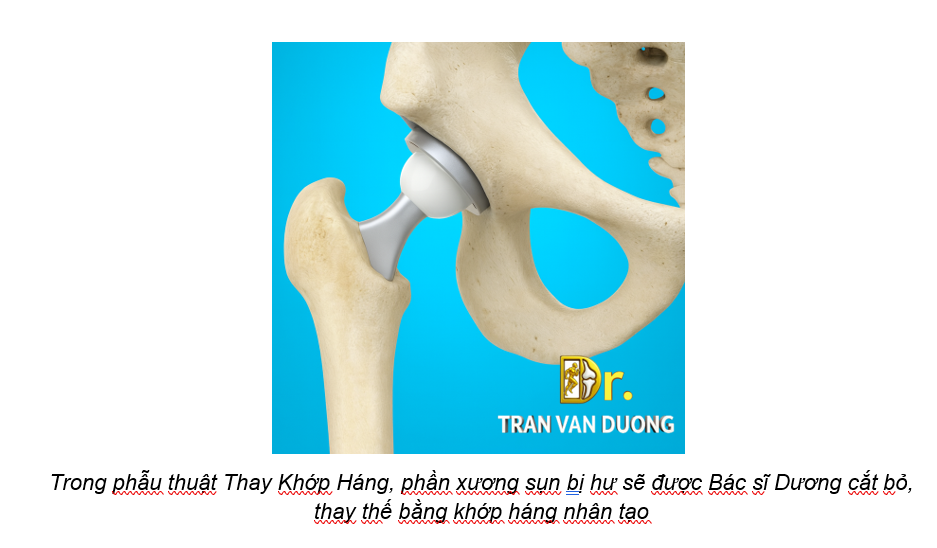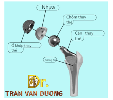 - Chỏm xương đùi bị hư sẽ được Bác sĩ Dương cắt bỏ và thay bằng một ống kim loại đặt vào ống tủy xương đùi. Phần này có thể được cố định bằng xi măng xương hoặc gắn chặt tự nhiên.