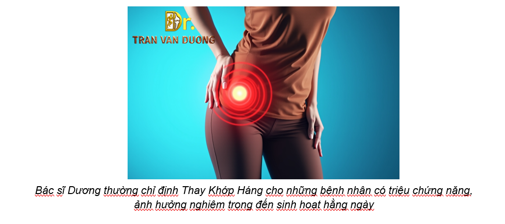 Bác sĩ Chuyên khoa 2 Trần Văn Dương thường chỉ định Thay Khớp Háng Toàn Phần cho những bệnh nhân có triệu chứng nặng, ảnh hưởng nghiêm trọng đến sinh hoạt hằng ngày. Bạn có thể được khuyến nghị phẫu thuật nếu: