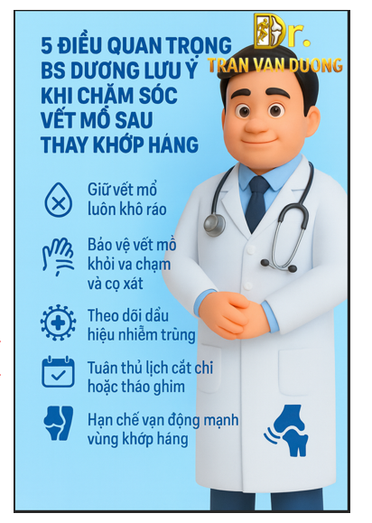 5 ĐIỀU QUAN TRỌNG BS DƯƠNG LƯU Ý KHI CHĂM SÓC VẾT MỔ SAU THAY KHỚP HÁNG